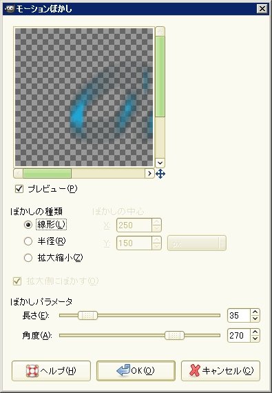 モーションぼかしをかけた後はこんな感じ