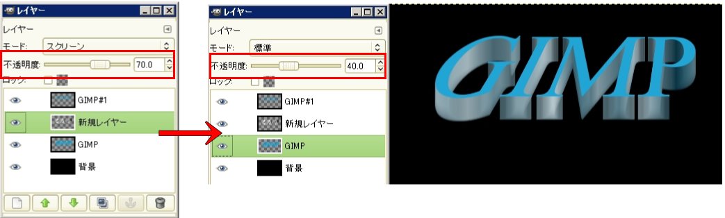 さらに、不透明度を「70」にします。続けて一つ下のレイヤー(モーションぼかしをかけたレイヤー)を指定して、透明度を「40」にします。ここでは40くらいにしています。