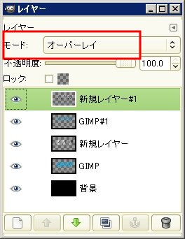 最後にレイヤーダイアログでレイヤーのモードを「オーバーレイ」に設定します。
