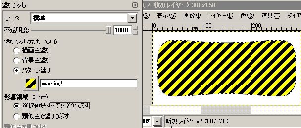 パターンで「Warning!」を選択して、塗りつぶします。