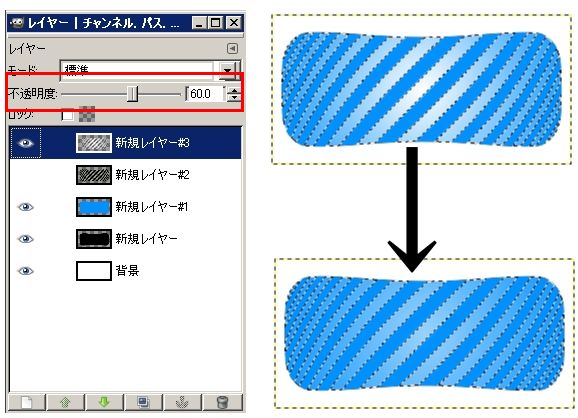 レイヤーの不透明度を「50~60」に設定します。