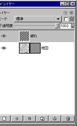 新規レイヤー作成し、名前を「破れ」とします。背景は透明部分を選択してください。