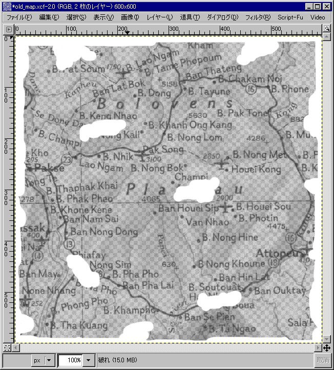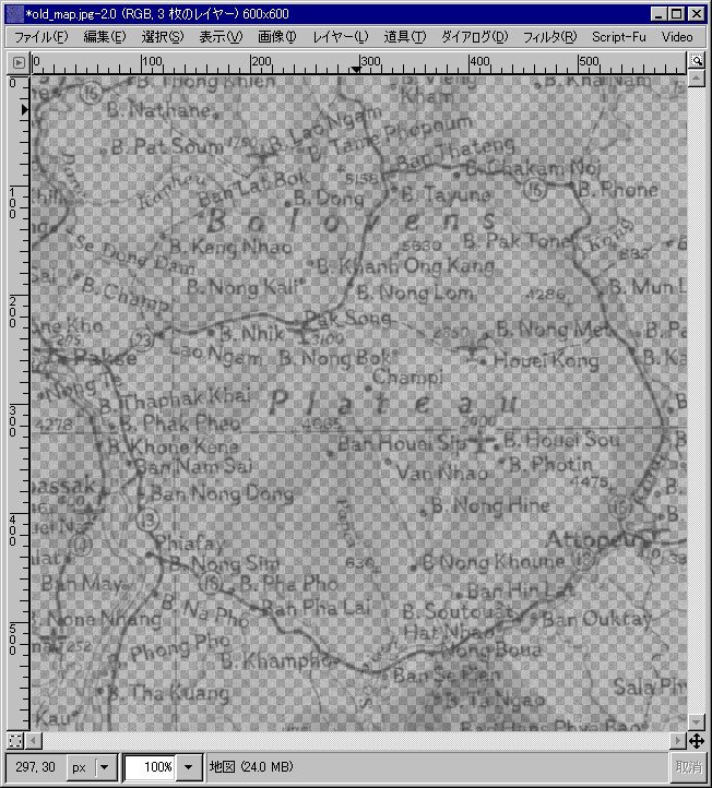 最後に、「地図」レイヤーの不透明度を適当な値にして完成です。ここでは不透明度を70にしました。