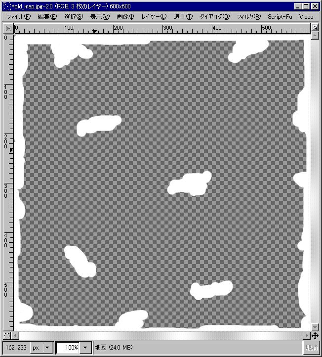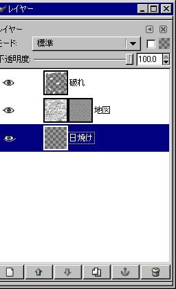 ちなみに、各レイヤー単独だとこんな感じ。左から順に「破れ」「地図」「日焼け」