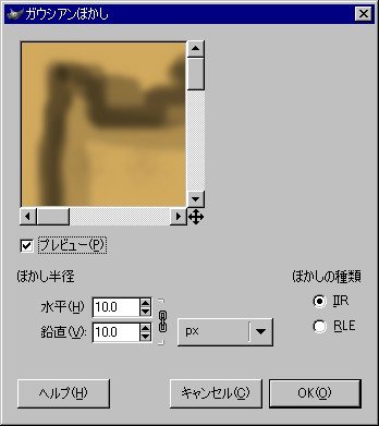 「フィルタ」の「ぼかす」にある「ガウシアンぼかし」を選択。ぼかし半径を10にして「OK」をクリックします。