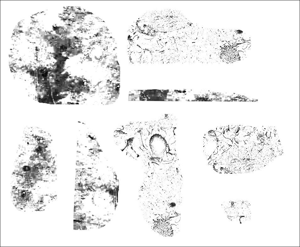 全部で8種類のブラシとxcfファイルが2つ含まれています。サイズは上の画像を拡大表示したときの等倍になっています。