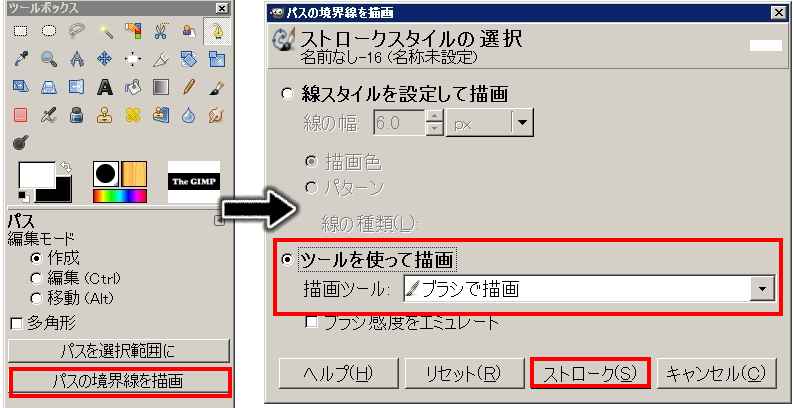 ツールを使って描画にチェックを入れ、「ブラシで描画」を選択します。