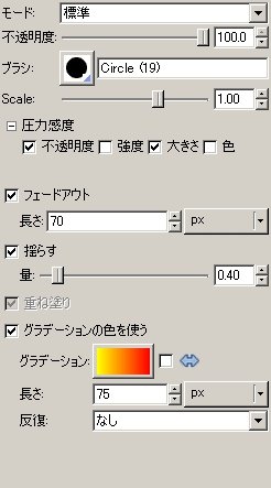 (ブラシの大きさやグラデーション等、値を色々指定していますが、各自のお好みで適宜変更して下さい)