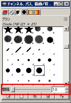 また、ブラシのツールボックスで「間隔」を1.0にしておきます。